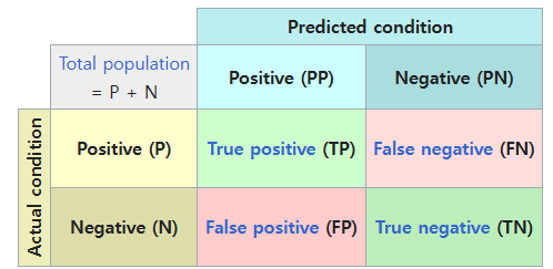 - 실제값과 예측값의 관계를 행렬 형태로 나타낸 것
