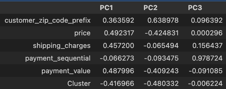 ↪︎ 절대값 클수록 각 주성분에 대한 영향력이 크다는 것 (주성분의 대표 특성)