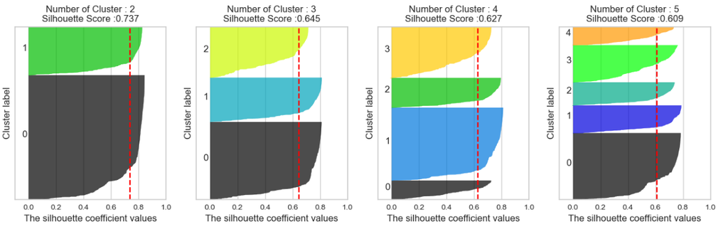 - 군집 수는 3~5개 정도로 시작해서 Silhouette Coefficient, elbow-point, Distance Map 참고해서 최적값 찾기